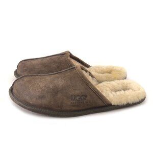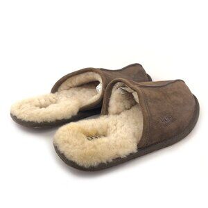 UGGs favorite house slipper is made for weekends and nights in, with soft wool lining and an easy slip-on shape. With its thin rubber sole, the Scuff is best worn indoors. Leather Upper. UGGpure wool footbed. Leather outsole with UGG logo print.