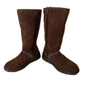 UGG Australia Tall Boots Women 10 Brown Suede Zip up I HEART Kisses Aztec Boho