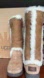 Stylish UGG Australia Tan Over Knee High suede leather shearling lined winter boots. Tan naural chestnut color suede with white fur trim. Featuring Water resistant, sturdy rubber sole with 1.5 heels. Perfect for cold weather. Excellent condition, worn once, like new in original Ugg box.