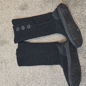 UGG Australia Women 5819 Black Knit Sweater Buttons Boots Shoes Sz 7