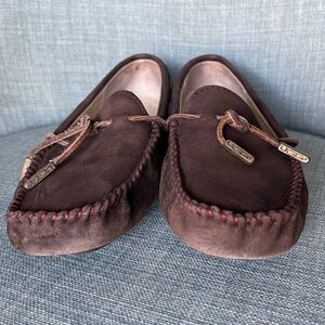 UGG Women Size 7 Dakota Moccasin Slippers Dark Brown Leather Loafers Australia