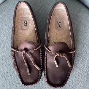 UGG Australia Women Size 7 Dakota Moccasin Slippers Dark Brown Leather Loafers