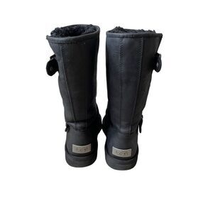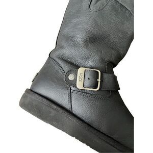 UGG Australia Women Sutter Black Leather Dual Buckle Moto Biker Boots size 6