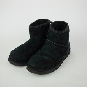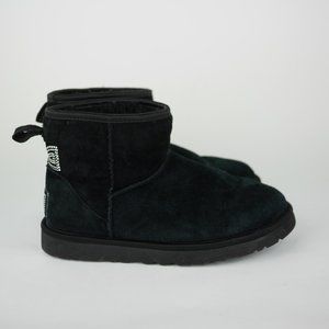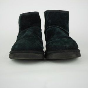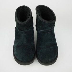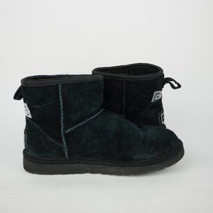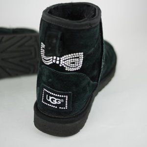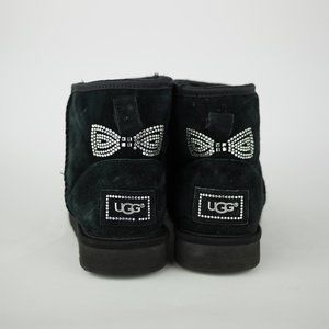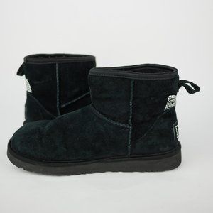 UGG Australia Women's 7 Black Leather Boots Short Ankle Fleece Crystal Studded