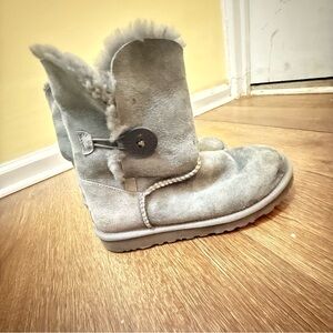 UGG Australia Womens Authentic Bailey Button 5803 Sheepskin Boot Grey Size 6