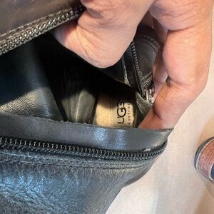 UGG Australia Women’s Black Leather Riding Boots Zip & Ties Shearling Sole US 7
