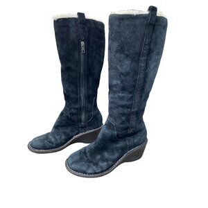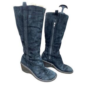 UGG Australia Womens Black Leather Sheep Lined Knee Winter Boots Size 9 SKU 9213