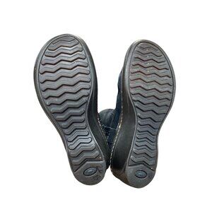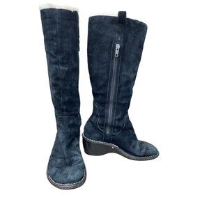 These UGG Australia winter boots offer superior comfort and warmth with their sheep lining and durable black leather. The knee-high design provides additional protection from the cold, making them ideal for winter conditions. The boots feature a convenient side zipper for easy wear and removal. In very good condition and no defects noted. SKU 9213
