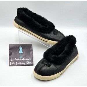 UGG Australia Women's Black Suede Fuzzy Lined Rylan Skimmer Slippers Size 8 2977