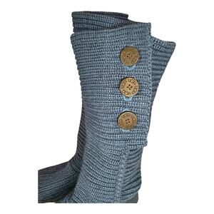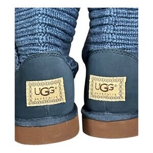 Brand new without box — authentic UGG Australia Classic Cardy Knit Boots in navy blue. These ultra-cozy boots feature a soft wool blend knit upper, suede heel guard, and signature wooden logo buttons. Can be worn tall, slouched, or cuffed for versatile styling.