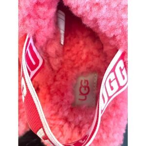 UGG Australia Women's Fluff Yeah Slide Slipper 1095119 Red Currant Size 5. Slip On Back Strap Shearling Fur Rubber Outsole. Excellent Preowned Condition.