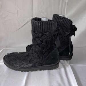 UGG Australia Women's Isla Knit Boots Cable Sweater Lace Up Size 7 Black 1008840