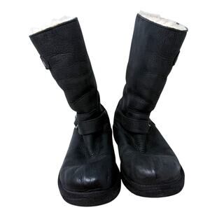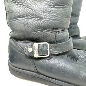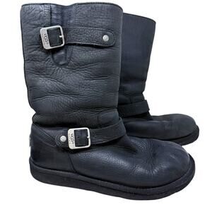 UGG Australia Womens Kensington Black Leather Sherpa Lined Winter Boots US 8
