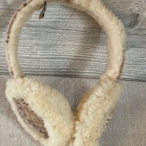 UGG Australia Women’s Shearling Classic Earmuffs Cream Embroidered Silk Y2K Logo