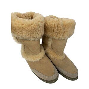 Cozy suede and sheepskin boots designed for warmth in cold climates. Durable sole and classic style ensure comfort and practicality.