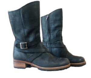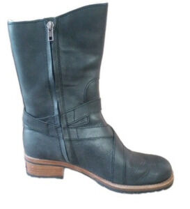 UGG Australia Women's Waverly Boots 5572 Black Leather Shearling Sherpa Zip Heel. In excellent pre-owned condition very clean Sz 7