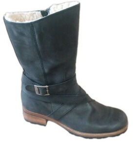 UGG Australia Women's Waverly Boots 5572 Sz 7 Black Leather Shearling Sherpa Zip
