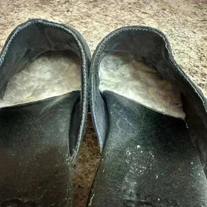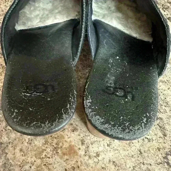 These ladies, black leather UGG clogs are in good preowned condition. Please see red marker on underside. Please see photos as they are part of the description . Questions? Leave a comment below!