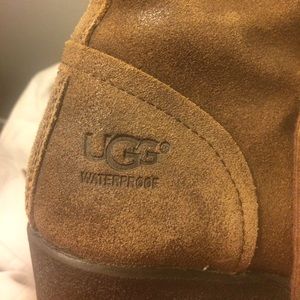 - Sheepskin collar/cuff ((Wear the collar up or down - that's up to you!)). -A molded rubber outsole delivers long-lasting durability on a variety of surfaces. -Insoles not included** (Unless asked), -Gently used, minimal signs of wear. Honestly I would keep them, they are great! But I'm a size 5, and I got these thinking I'd make them fit