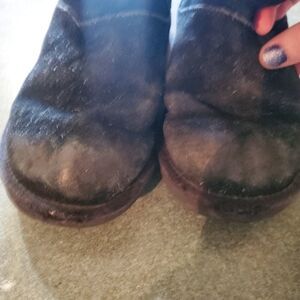 UGG Australia Black fur lined youth boots size 1 in used condition with wear as shown in the pictures, especially on the toe area.
