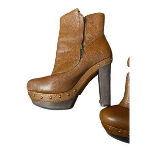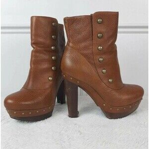 UGG AustraliaBrown Leather High Heel Ankle with Studs Boots/Booties SZ 5.5