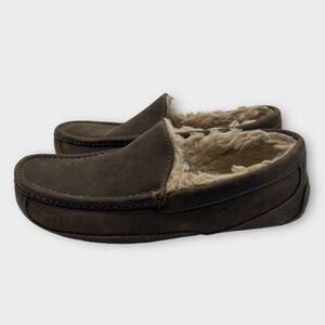 UGG Australia Mens Ascot Leather Closed Toe Slip on Slippers Brown Size 8 Nice!