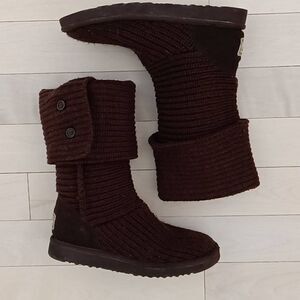 UGG Australia Women's Brown Classic Cardy Pull-On Wool Knitted Snow Boots Size 8