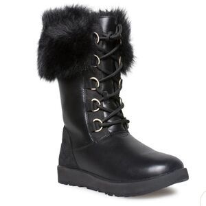A lush genuine-shearling cuff tops the padded shaft of a waterproof snow boot grounded by a Vibram sole featuring Arctic Grip treads that stay flexible, even in the coldest of temperatures.