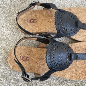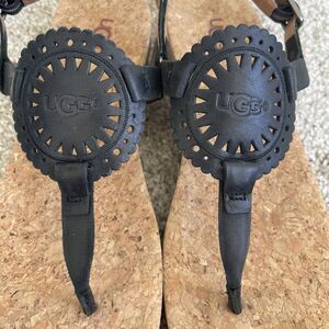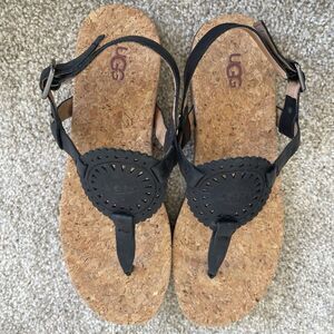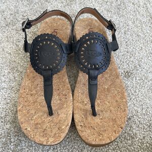 UGG Ayden II T Strap Black Leather Thong Sandal Flats Size 9