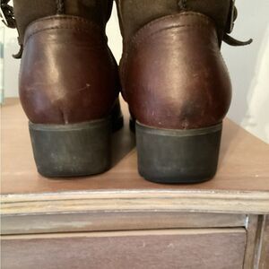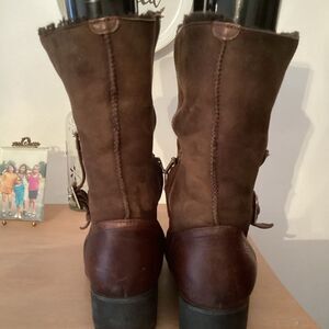 CONVERTIBLE BROWN LEATHER SHERPA LINED BOOTS