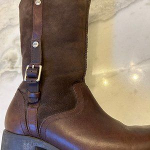 UGG, BROWN LEATHER & LAMBS WOOL SUEDE BOOTS SIZE 8