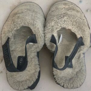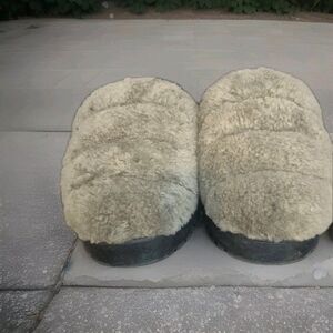 UGG BURNT OLIVE SLIDE SHEEPSKIN SLIPPERS, WOMEN US 9/ EUR 40