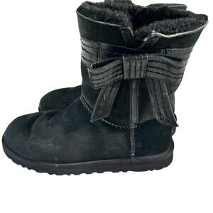 UGG Bailey Bow Black Shearling Boots Women’s US 8 Good Condition