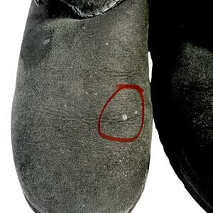 The boots show normal wear consistent with use, including light suede wear and creasing. There are a few small clear spots on the suede (appears similar to clear nail polish or a hardened residue) that does not come out. The spot is cosmetic and does not affect wear or structure—please review close-up photos carefully.
