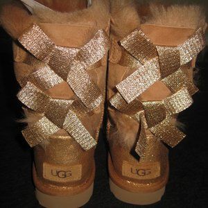 UGG Bailey Bow Glitz Boots Brown w/Metallic Bow Women Euro 36 or US 5.5 -6 NEW