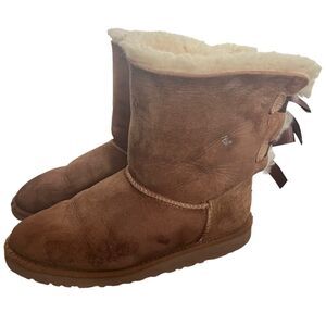 UGG Bailey Bow II Boots S/N 1002954 women US 5 brown suede satin bows shearling