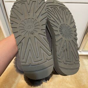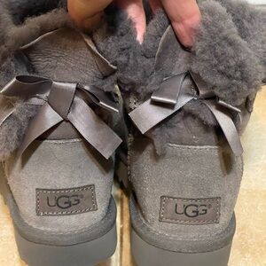 UGG Bailey Bow II Gray Suede Boots Womens 5 Slip On Sheepskin Mid-Calf Boot