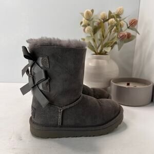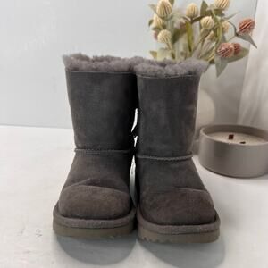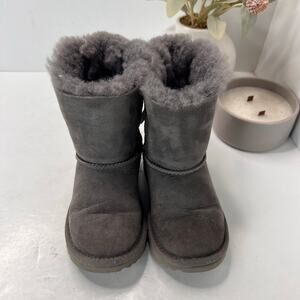 UGG Bailey Bow Suede Shearling Lined Boot Gray 1017390T Girls Toddler's 10