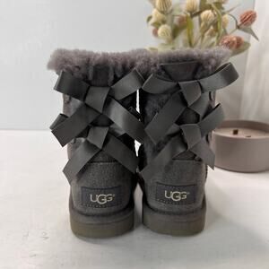 UGG Bailey Bow Suede Shearling Lined Boot Gray 1017390T