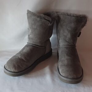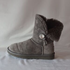 UGG Gray Bailey Button Bling Boots Women's Size 8. Great condition! Light natural creasing on tops of foot. Wool lining is still soft & fluffy.