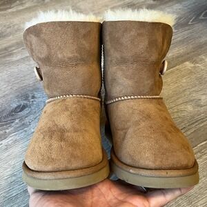 UGG Bailey Button Booties Brown Suede Leather Shearling Womens 6 UK 4 EU 36