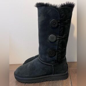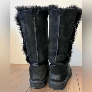 UGG Bailey Button Tall Black Suede Boots Womens size 6