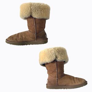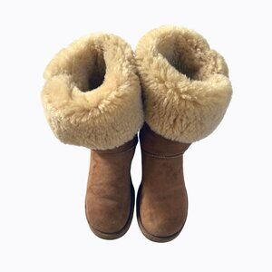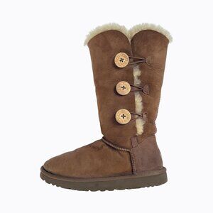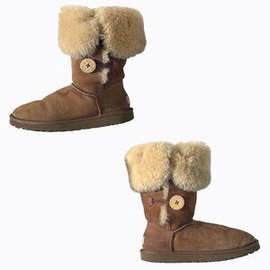 UGG Bailey Button Triple II Suede Tall Boots Sz8 Sheepskin Lined Chestnut Y2K
