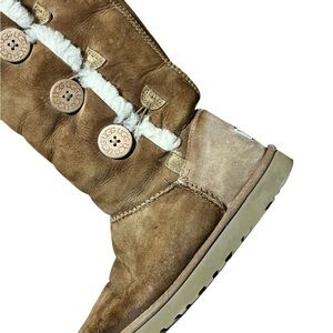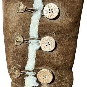 Experience warmth and comfort with these UGG winter boots, crafted in a rich brown suede-like material. The cozy lining ensures your feet stay snug during cold weather, while the durable sole provides excellent traction for winter conditions.