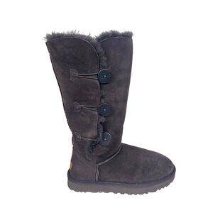UGG Bailey Button Triplet II Tall Boots Women’s 10 Chocolate Brown Suede Fur