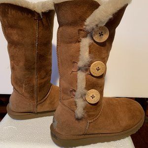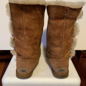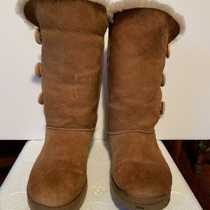 UGG Bailey Button Triplet II Tall Boots Chestnut Women's Suede Leather Fur Lined Size 7 Chestnut