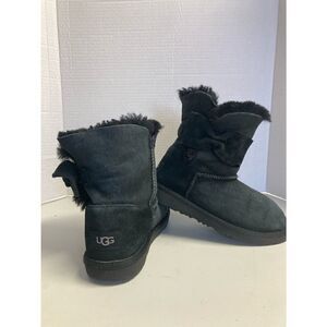 UGG Bailey Girls, Black Boots, Sz 3, one bow on side. Australia winter boots, suede. Does show some wear,( see pictures) but still a good looking boot. W1,30, See size chart & foot length chart from UGG Website, warm, cozy, comfy