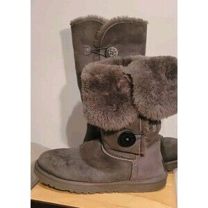 UGG Bailey Triplet Button Women Sheepskin Shearling Sherpa Boots Grey Women sz 9