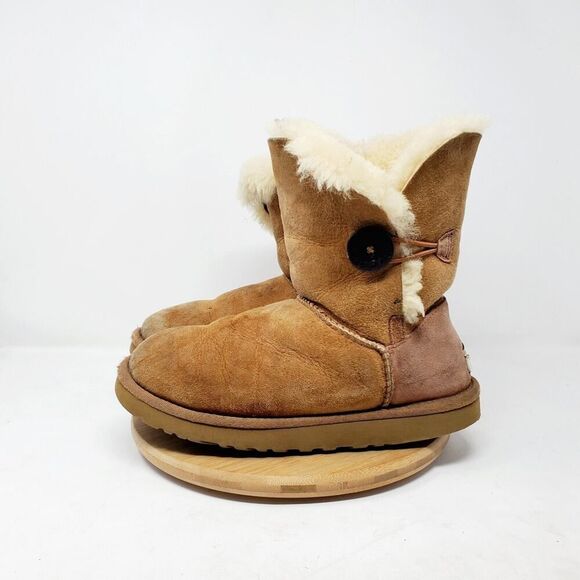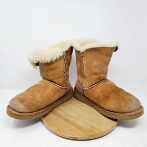 UGG Bailey II Boots Womens 7 Brown Suede Sheepskin Winter Button Classic Shoes
