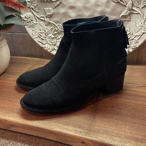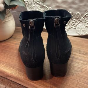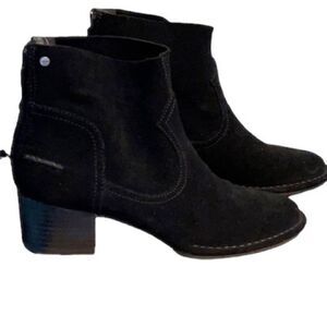 UGG Bandara Black Suede Stacked Heel Zip Ankle Mini Boots Booties Womens EU 37.5 - Great Condition